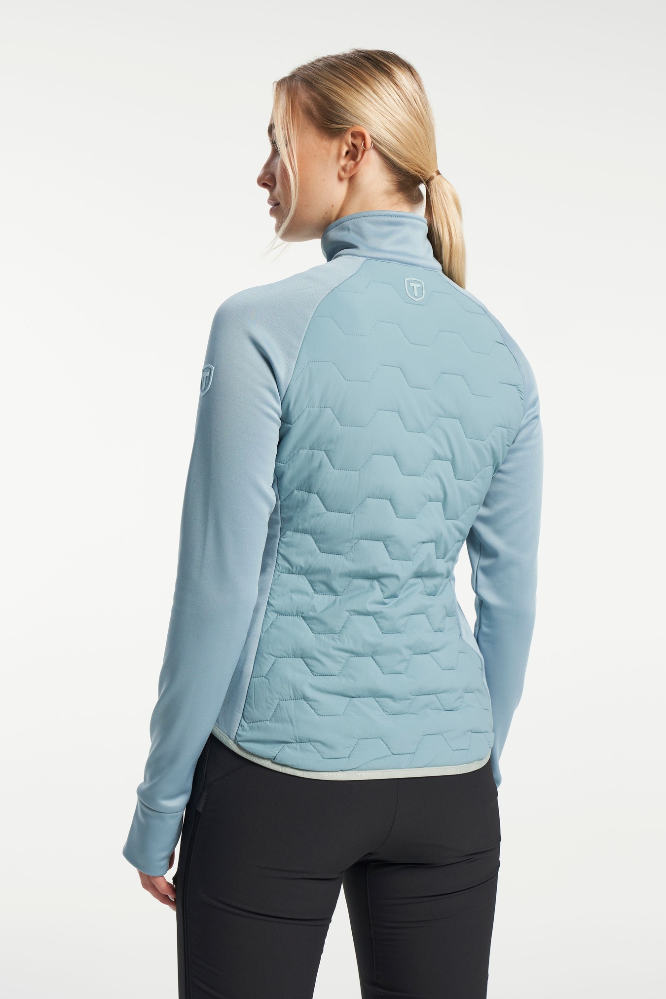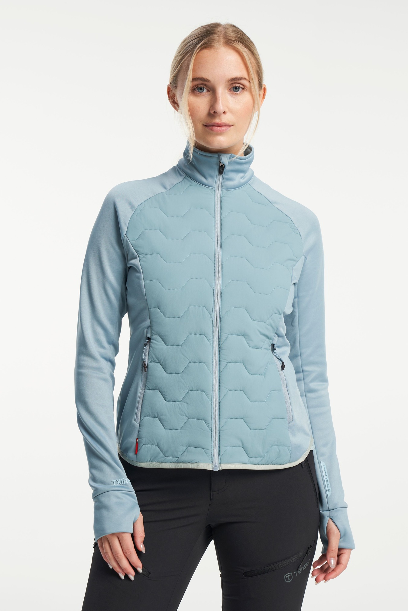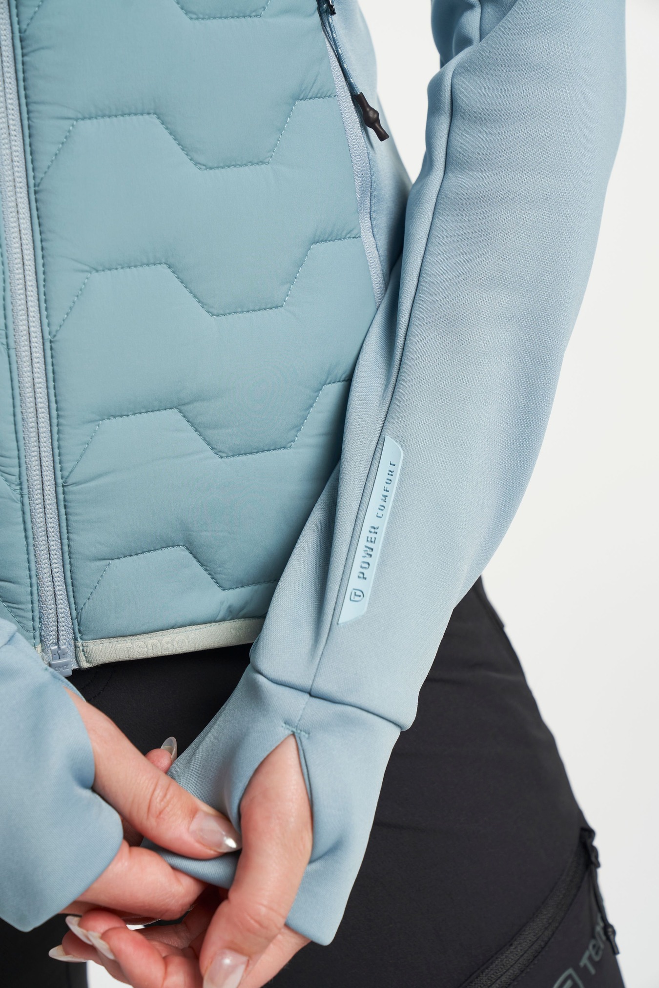 Diese Mid-Layer-Jacke für Damen aus dehnbarem PowerComfort™-Gewebe ist an aktiven Tagen unglaublich bequem zu tragen. Dank des dehnbaren Materials und der verlängerten Arme mit Daumenlöchern lässt sie sich perfekt unter einer Jacke tragen. Der Kragen mit gefaltetem Kinnschutz hält den Hals besonders warm. Mit isolierten, gesteppten Bereichen auf der Vorder- und Rückseite für zusätzliche Isolierung, gegliederten Ärmeln, zwei Vordertaschen mit Reißverschluss und einem elastischen Saum. Das Material ist schnell trocknend, falls Sie schwitzen oder nass werden. Und natürlich können Sie sie sowohl als Jacke als auch als Zwischenschicht tragen.