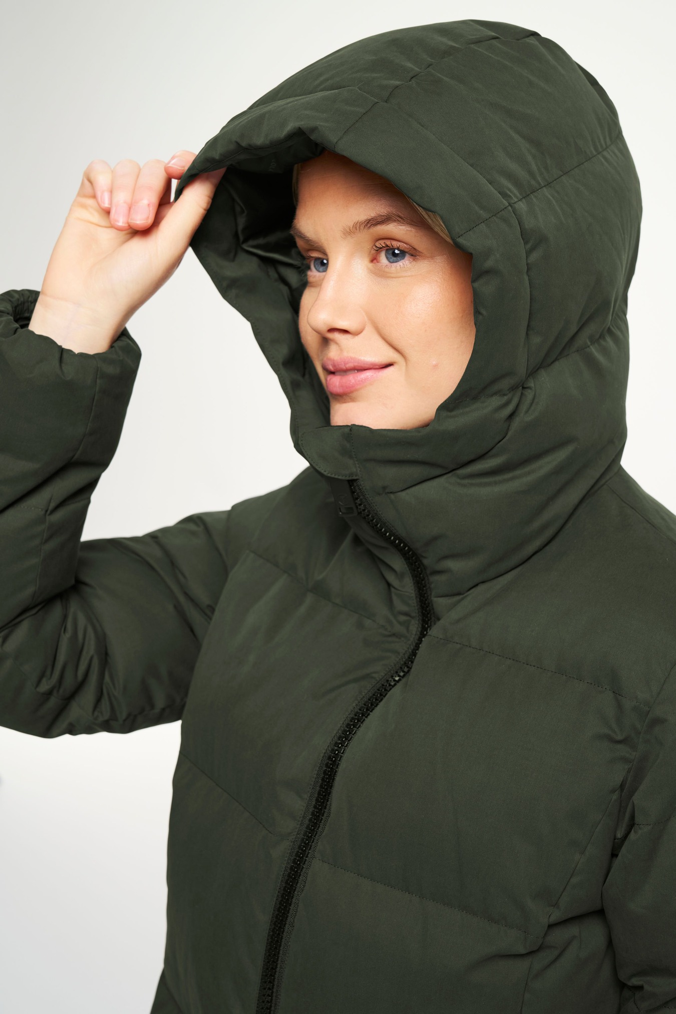 2 way zip, Adjustable hood, vertical and horizontal, Adjustable sleeve hem with slits and zippers, Air Push soft synthetic insulation, E-dye Polyester lining, Fixed hood, Inner cuffs at sleeves in rib, Inner pocket with zip, Sidezippers at hem, Two front pockets with zippers