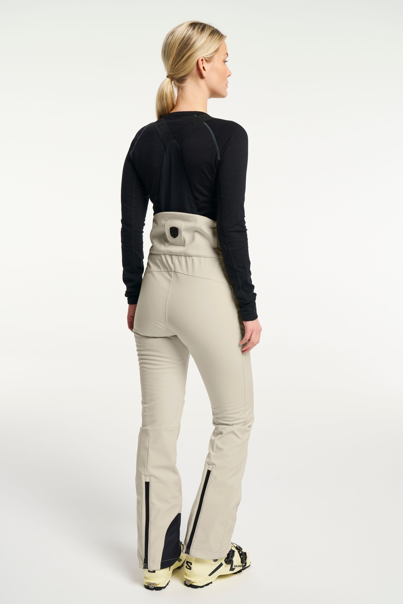 The Grace Softshell Ski Bib is a pair of women’s SkiPants with a high waist and straps in a classic, stylish, and clean design. They are tight-fitting with long legs that fit nicely over ski boots. The extra high waist gives these pants a stylish look and also prevents snow from getting in. The softshell fabric is flexible and soft and ensures you won’t get wet. The straps will keep the pants in place all day and can also be removed. These pants go perfectly with the Grace Ski Jacket.