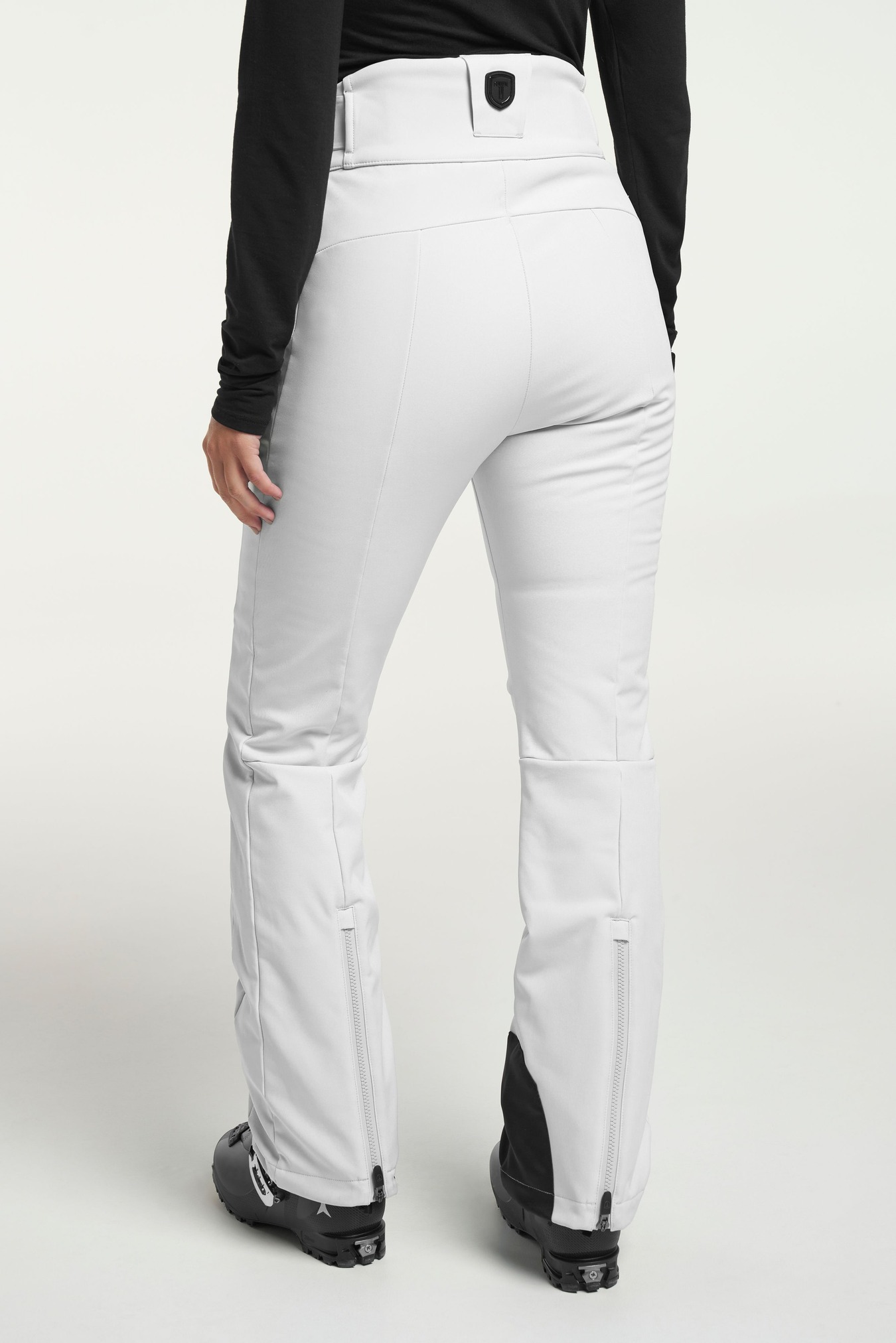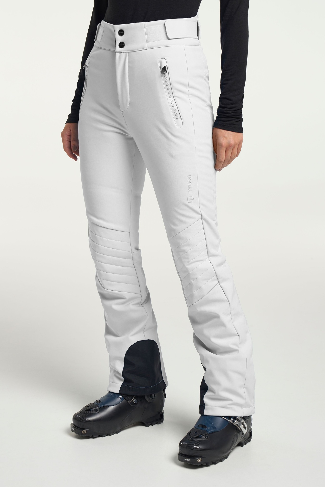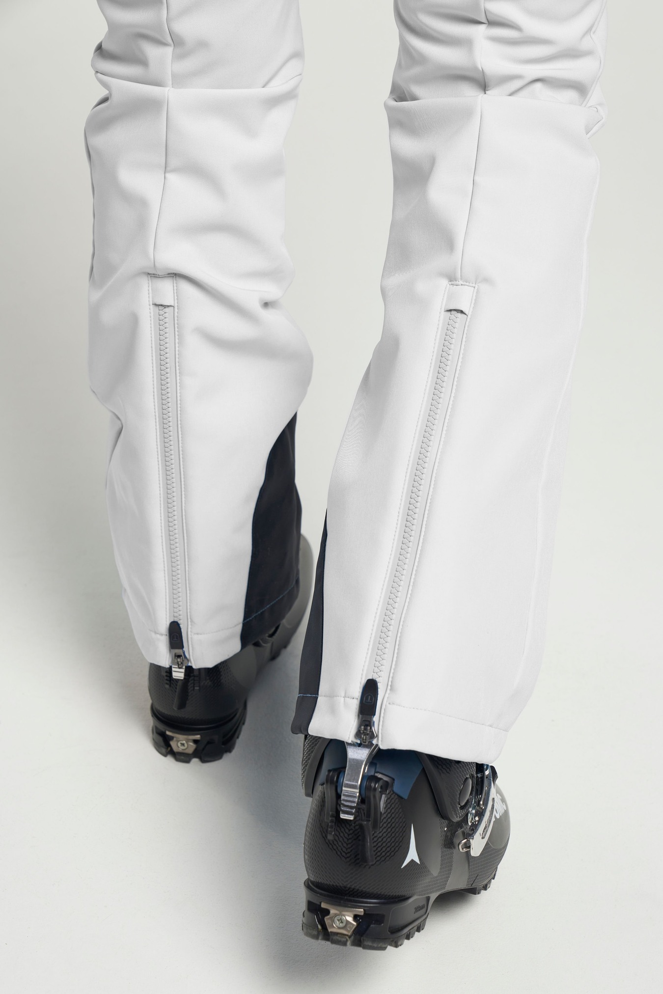 Ski chique – our Grace Softshell SkiPants provide an elegant stylish silhouette that follows your curves perfectly. A slim-fit pair with an elastic waist and a comfortable feeling made possible by the freedom of movement that the water-repellent and windproof softshell fabric provides. Features two zippered front pockets, zippered hems, padded knees, snow gaiter inside leg hem and water-repellent zippers.