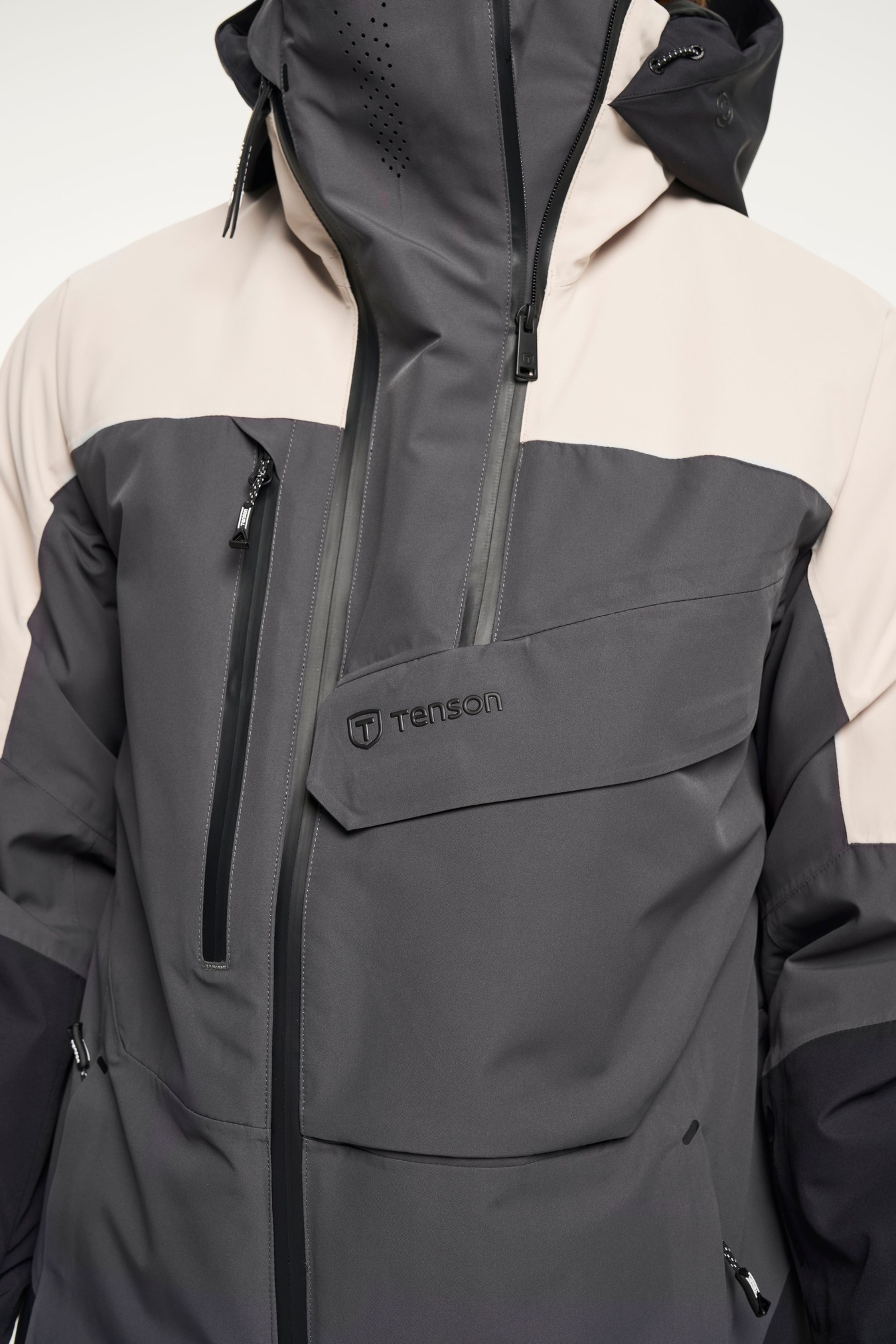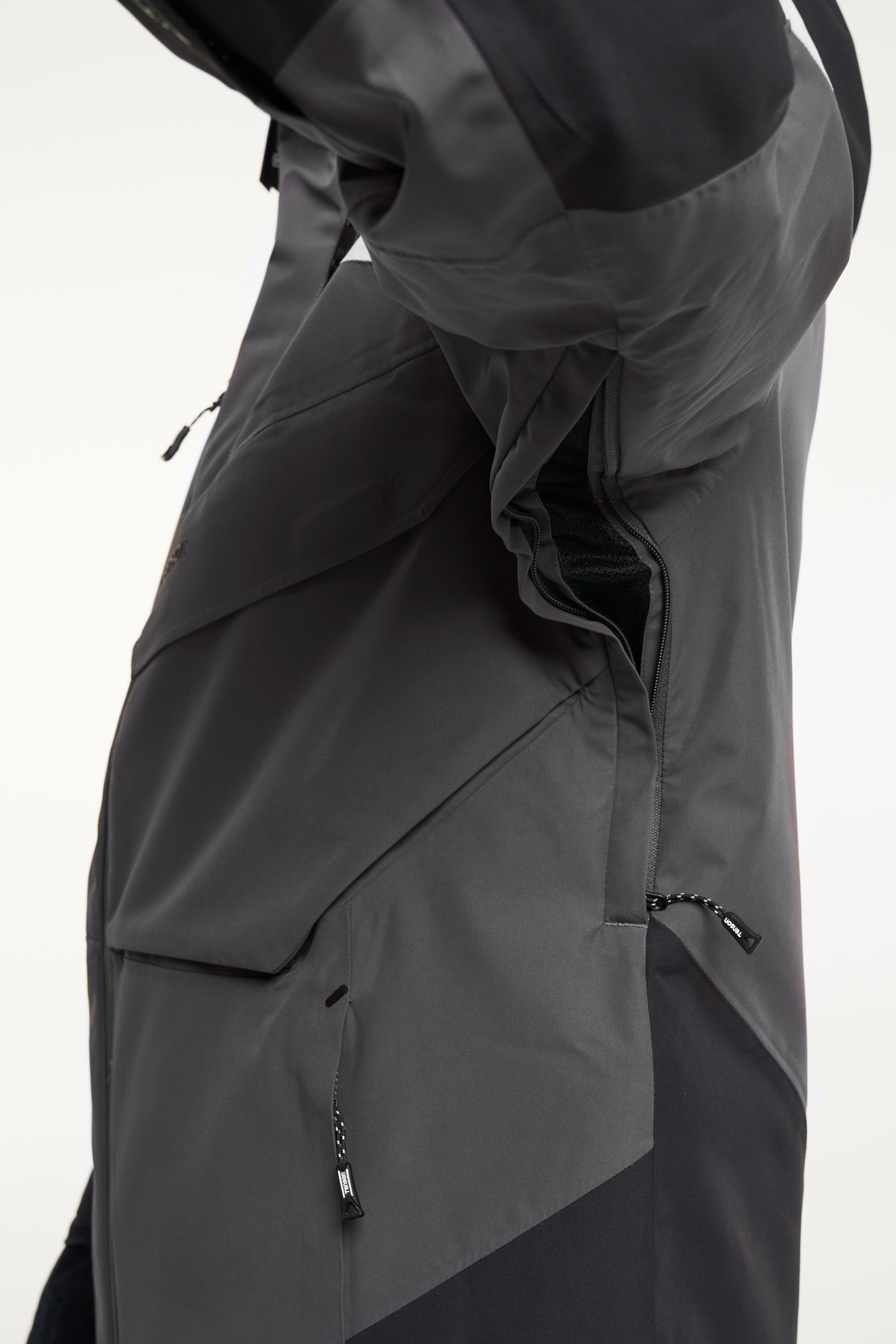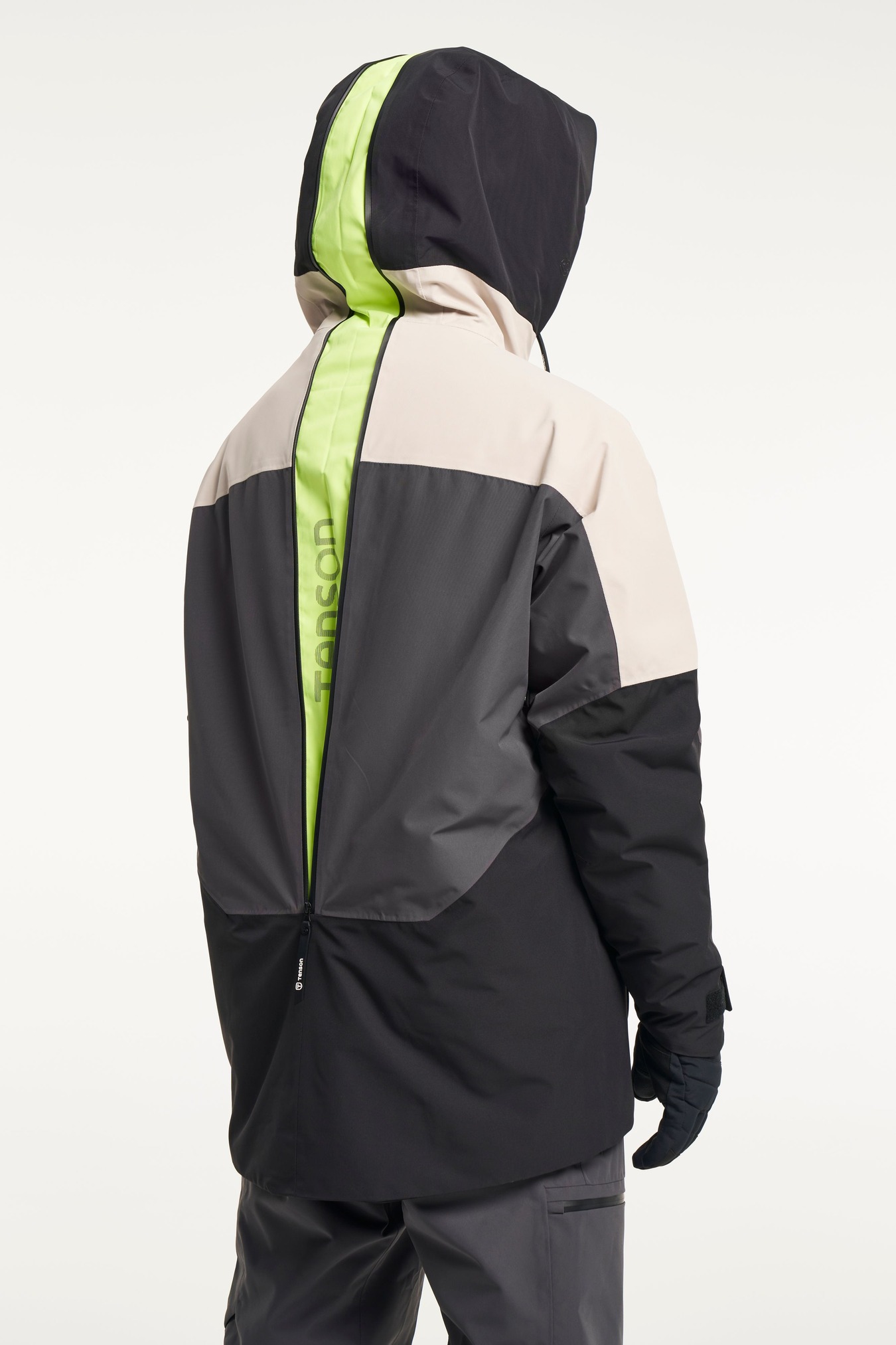Freeride skiing conditions can vary tremendously, from extreme sub-zero, windy mornings to sunny and war- mer afternoons. With this in mind we’ve made sure our Freeride collection is versatile, adaptable, lightweight and durable to provide you with all-round comfort and protection from the elements. The Aeron Ski Jacket has a unique zip functionality in the back featuring neon details for high visibility to fit back protectors and an expandable hood that fits over your helmet. The jacket is wind and waterproof with sealed seams to be able to handle long days out in the snow and is wind- proof to withstand strong winds and high speeds on the slope. The insides of the collar and pockets features fleece to keep your hands warm and comfortable. The main zip construction is a two-way zip that can be ope- ned from the bottom.