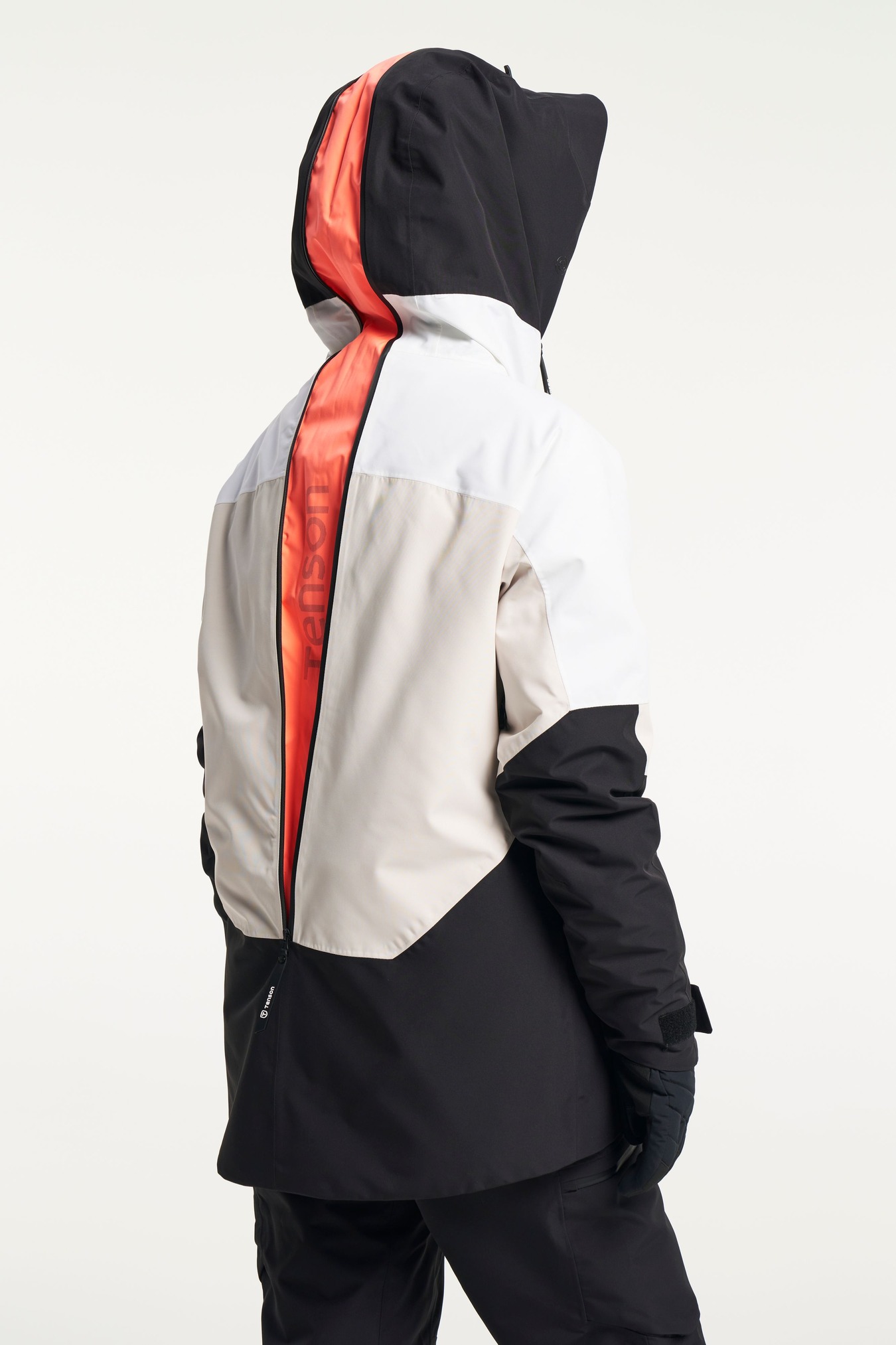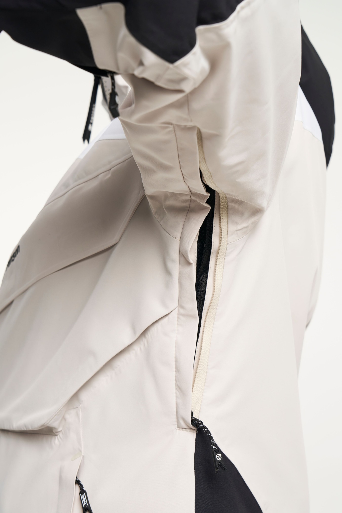 Freeride skiing conditions can vary tremendously, from extreme sub-zero, windy mornings to sunny and war- mer afternoons. With this in mind we’ve made sure our Freeride collection is versatile, adaptable, lightweight and durable to provide you with all-round comfort and protection from the elements. The Aeron Ski Jacket has a unique zip functionality in the back featuring neon details for high visibility to fit back protectors and an expandable hood that fits over your helmet. The jacket is wind and waterproof with sealed seams to be able to handle long days out in the snow and is wind- proof to withstand strong winds and high speeds on the slope. The insides of the collar and pockets features fleece to keep your hands warm and comfortable. The main zip construction is a two-way zip that can be ope- ned from the bottom.