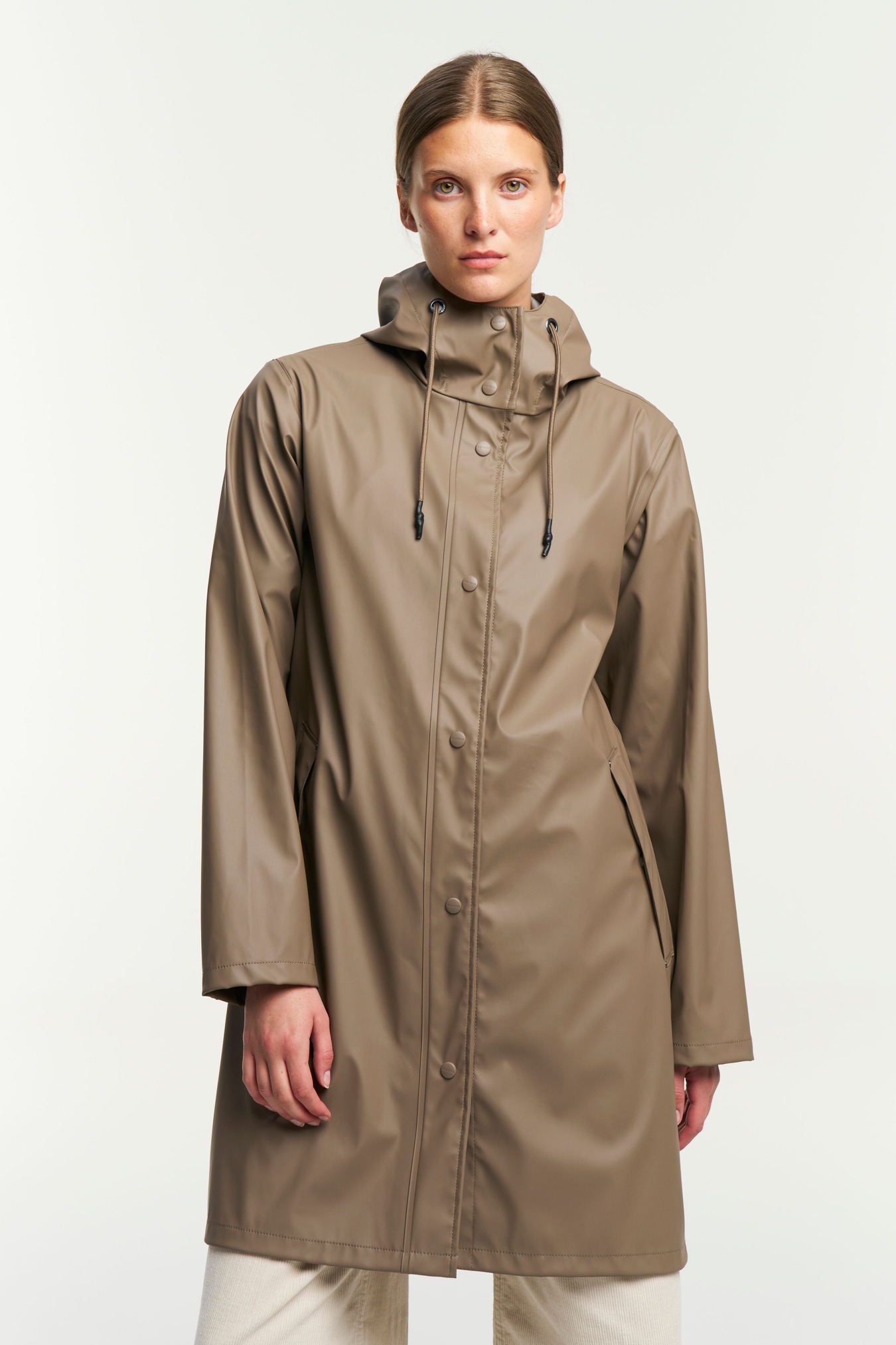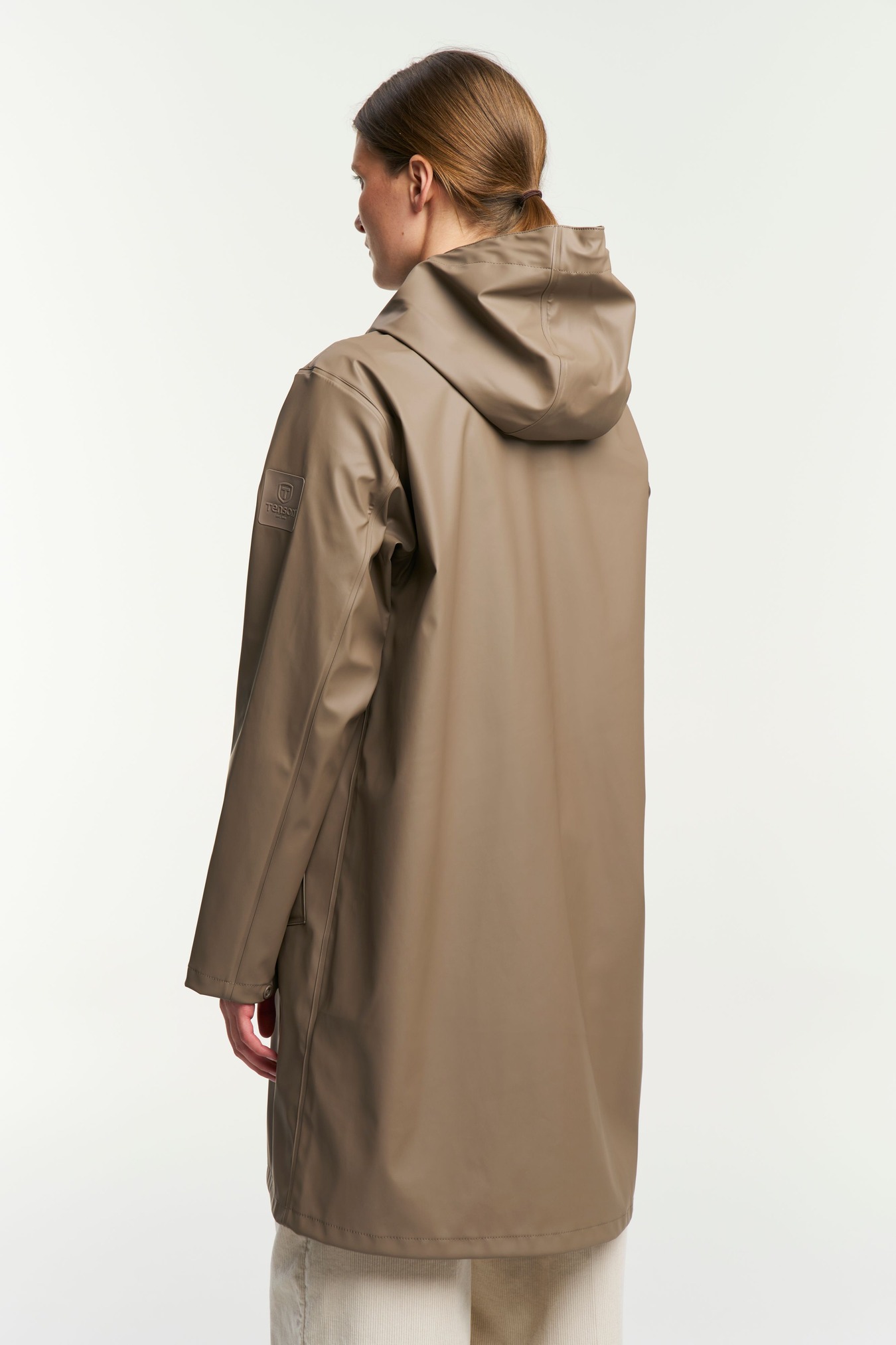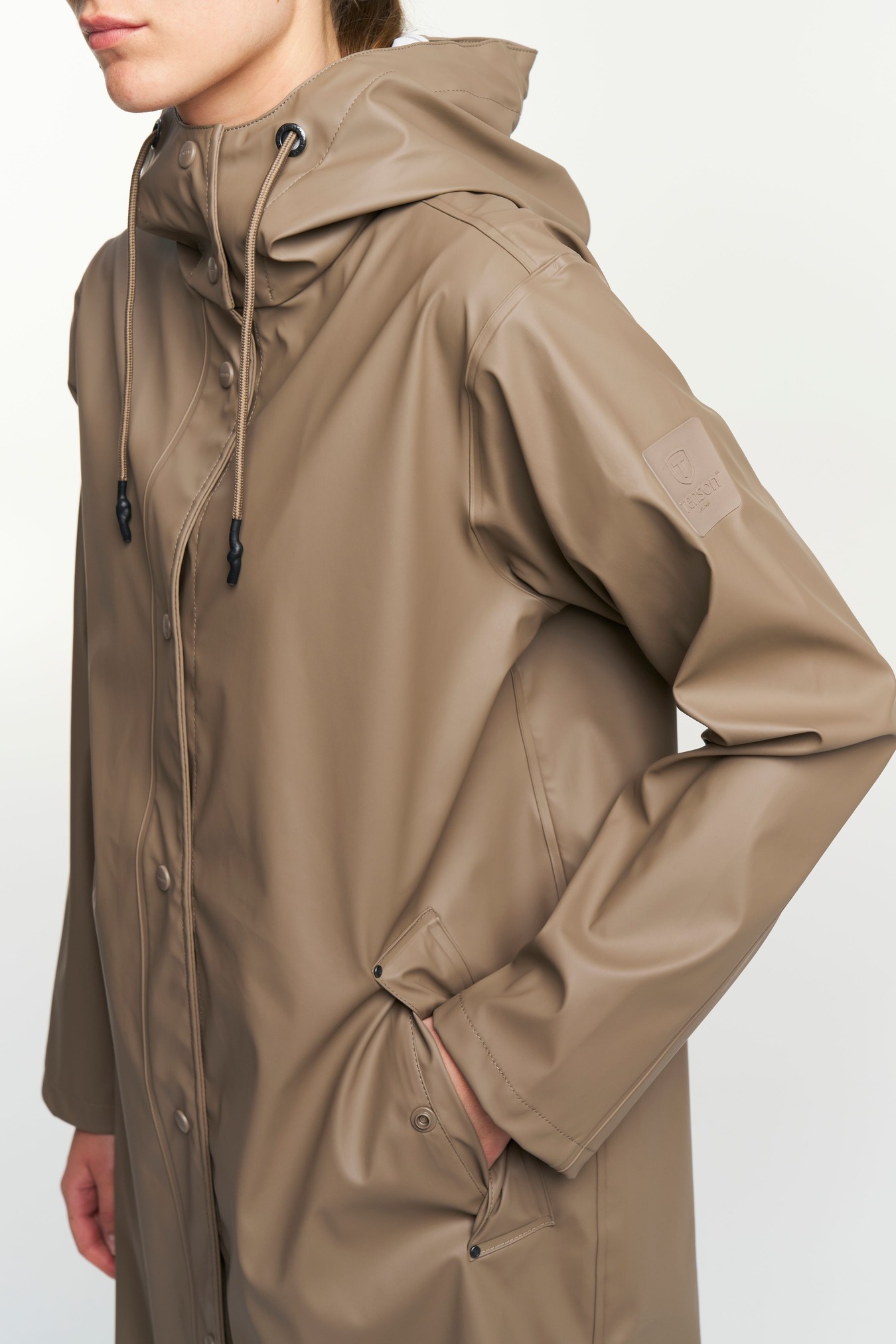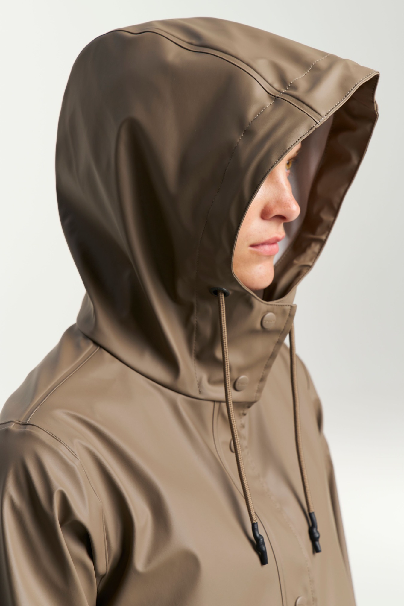 Apelviken is a women’s raincoat in an A-line silhouette and a classic stylish look. Made with 100% polyurethane and a soft tricot backing, welded seams and a 5,000 mm waterproof rating, it keeps you dry in the heaviest downpours. The raincoat has adjustable cuffs and articulated sleeves for the best possible fit. Comes with a fixed hood.