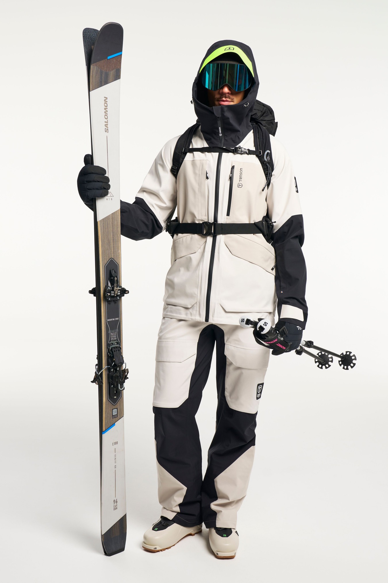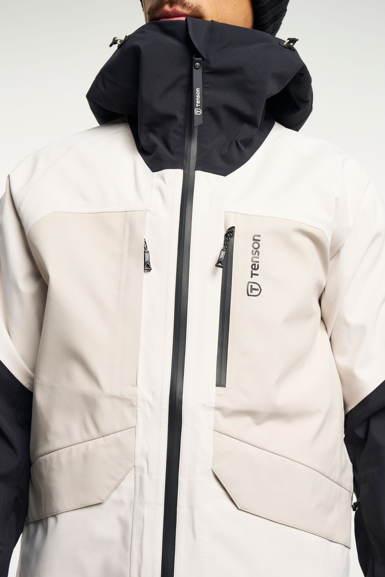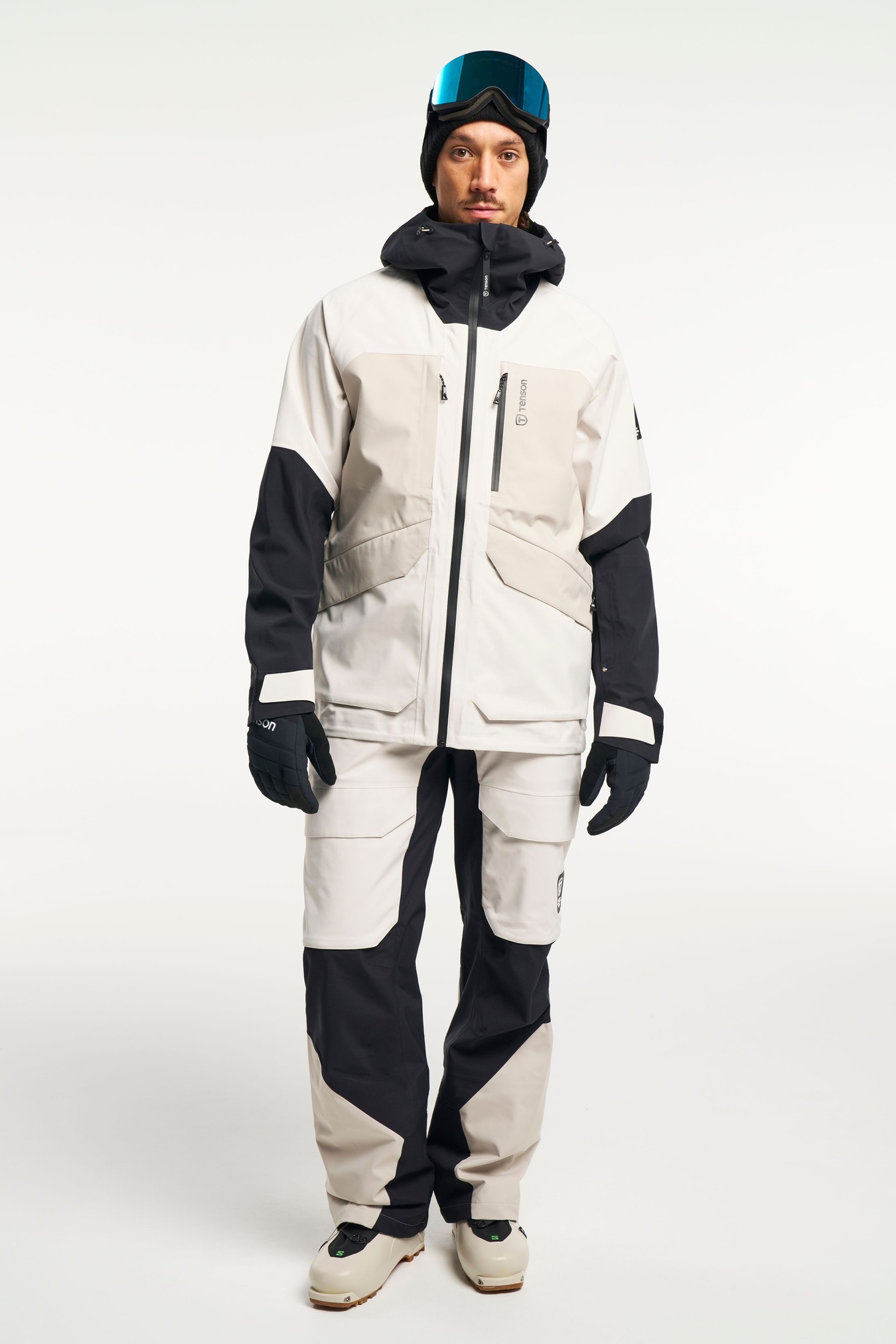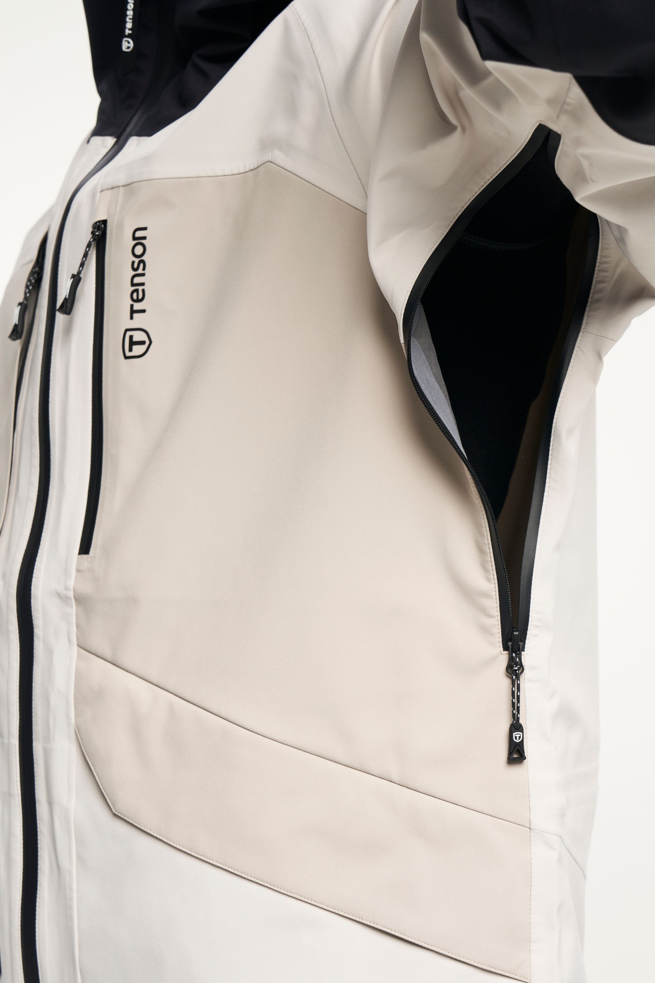 Adjustable cuffs, Adjustable hem, Adjustable hood vertical and horizontal, Articulated sleeves, Fixed hood, Fleece inside collar, Folded chinguard, Helmet compatible hood, High collar, Inner pocket with zip, Laminated brim, Ski pass pocket, Snow skirt: removable with zip, Taped seams, Two chest pockets with zippers, Two front pockets with zippers, Water repellent zippers, Velcro-adjustable sleeve straps, Ventilation under arm