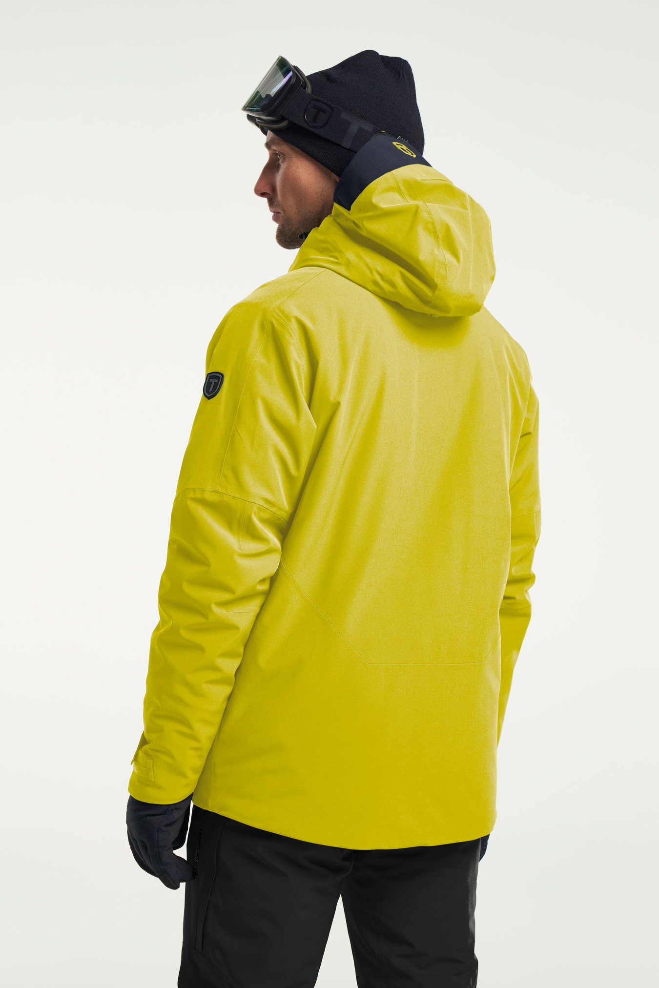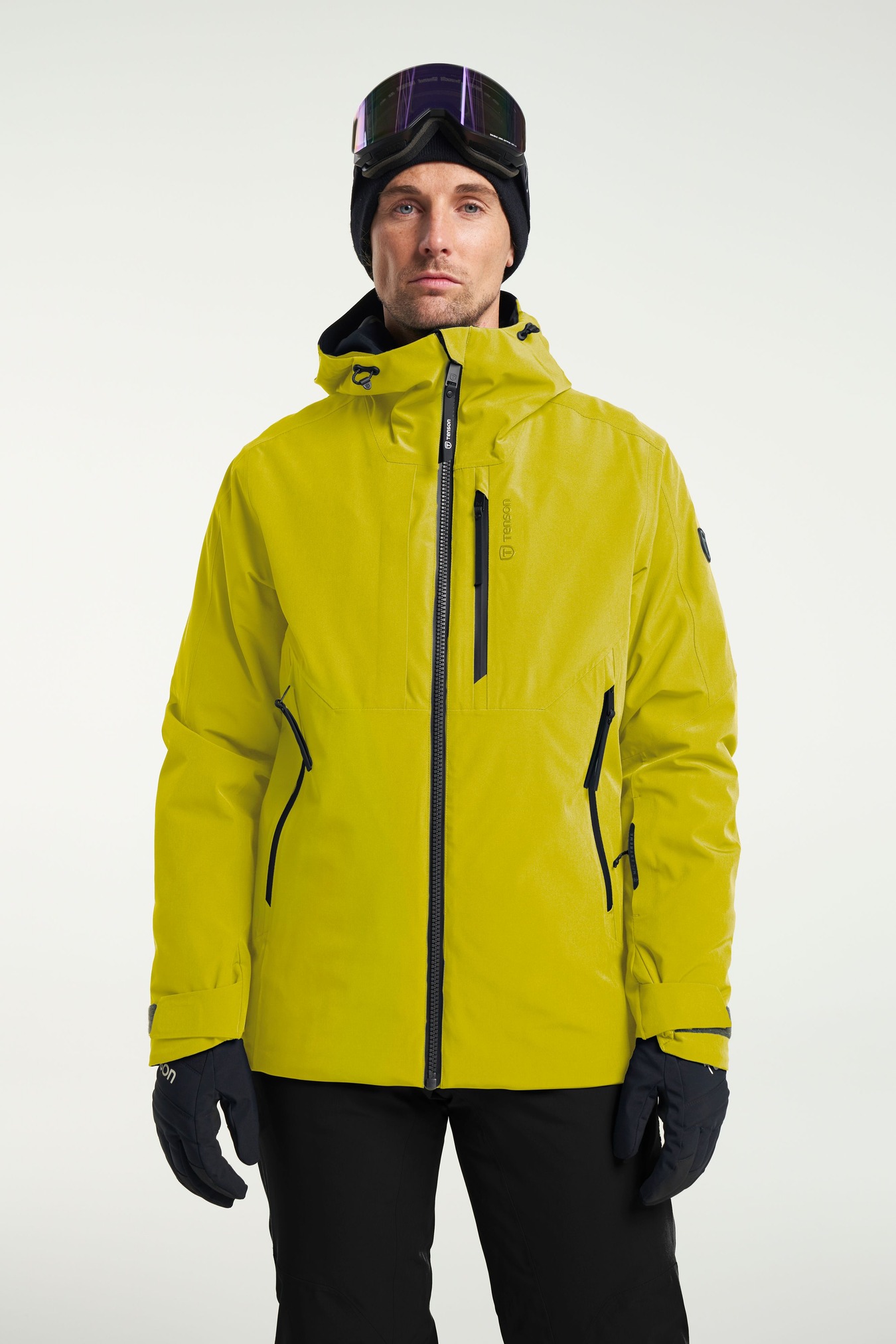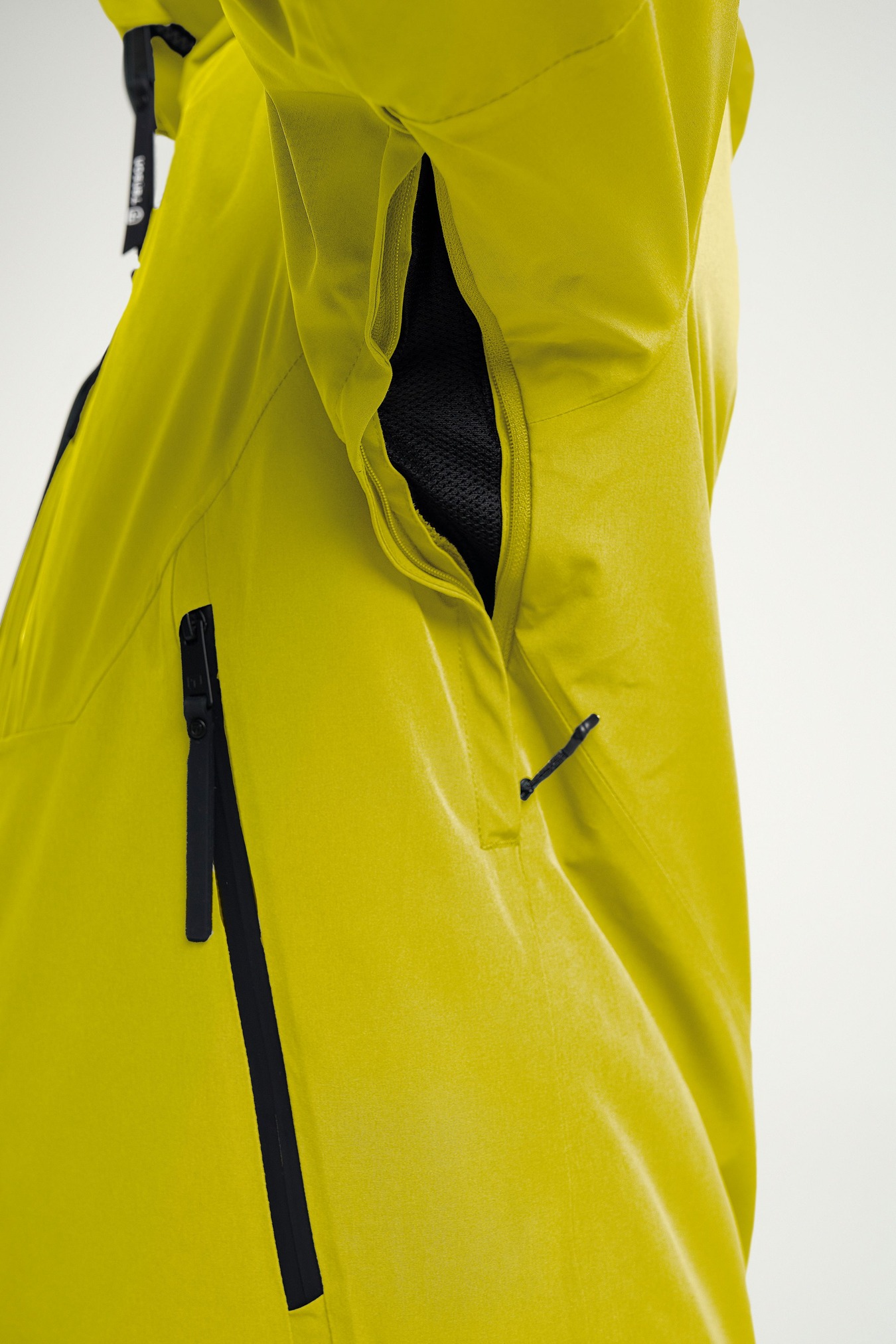 120 gr High-loft synthetic insulation, Adjustable cuffs, Adjustable hem, Adjustable hood, vertical and horizontal, Articulated sleeves, E-dye Polyester lining, Fixed hood, Fleece inside collar, Fleece lined pockets, Folded chinguard, Hem adjustment, Inner lycra cuffs at sleeve ends, Innerpocket with elastic mesh, Innerpocket with zip, Laminated brim, Ski pass pocket, Snow skirt: removable with zip, Taped seams, Two chest pockets with zippers, Two front pockets with zippers, Water repellent zippers, Ventilation under arm