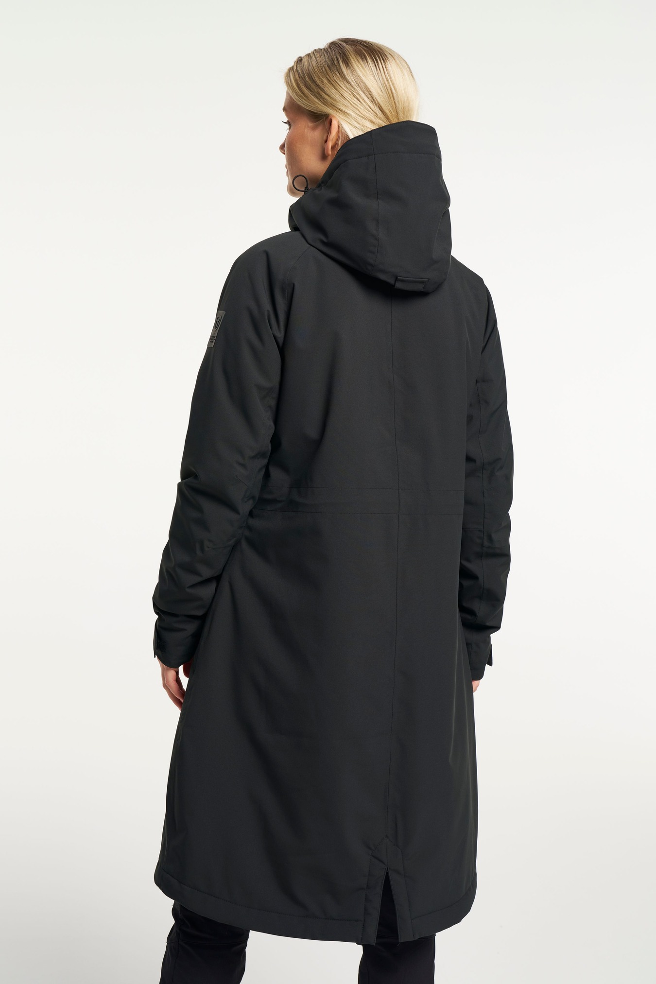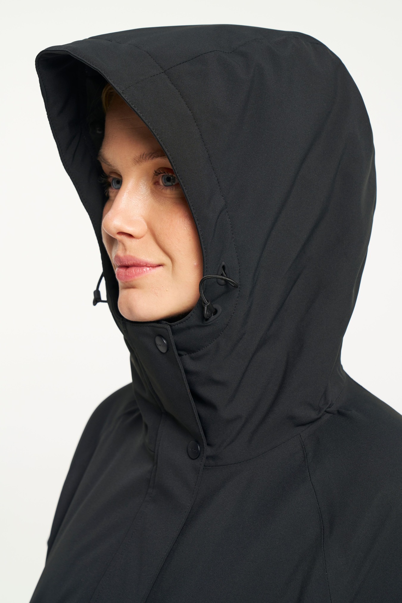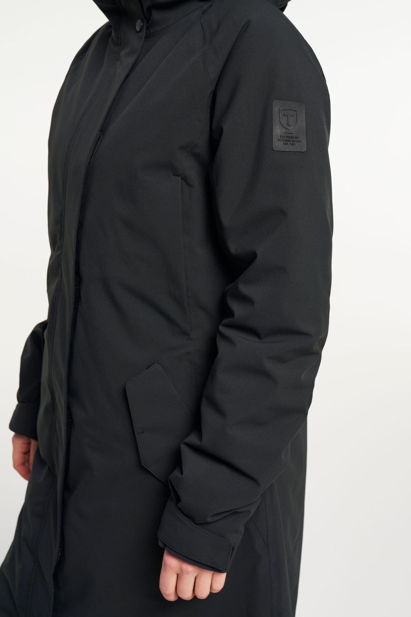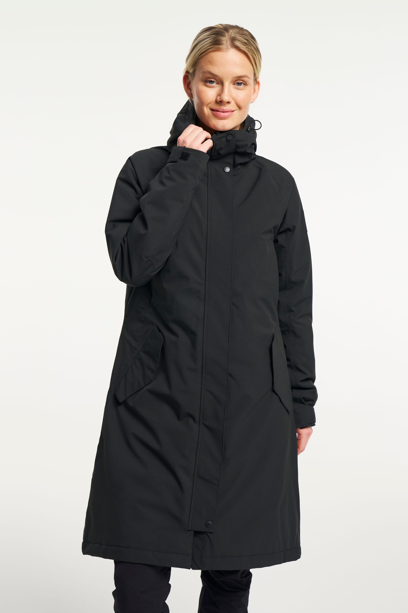 De Trudy Parka is een klassieke waterafstotende parka voor dames met een vaste capuchon. Voorzien van getapete naden en Tenson's gepatenteerde MPC-technologie (WP 5.000 mm / MP 5.000 g/m2/24h) die een zeer effectieve waterdichtheid combineert met een uitzonderlijk ademend vermogen. Op warmere dagen kan de rits aan beide kanten geopend worden voor extra ventilatie. Hij heeft twee voorzakken met rits en kleppen. Wordt geleverd met E-dye polyester voering en een PFC-vrije waterafstotende afwerking.