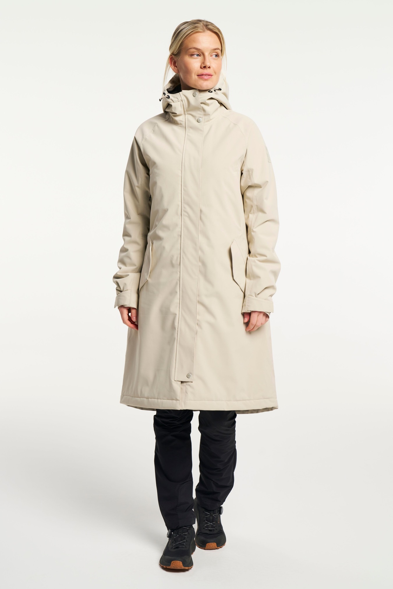 De Trudy Parka is een klassieke waterafstotende parka voor dames met een vaste capuchon. Voorzien van getapete naden en Tenson's gepatenteerde MPC-technologie (WP 5.000 mm / MP 5.000 g/m2/24h) die een zeer effectieve waterdichtheid combineert met een uitzonderlijk ademend vermogen. Op warmere dagen kan de rits aan beide kanten geopend worden voor extra ventilatie. Hij heeft twee voorzakken met rits en kleppen. Wordt geleverd met E-dye polyester voering en een PFC-vrije waterafstotende afwerking.