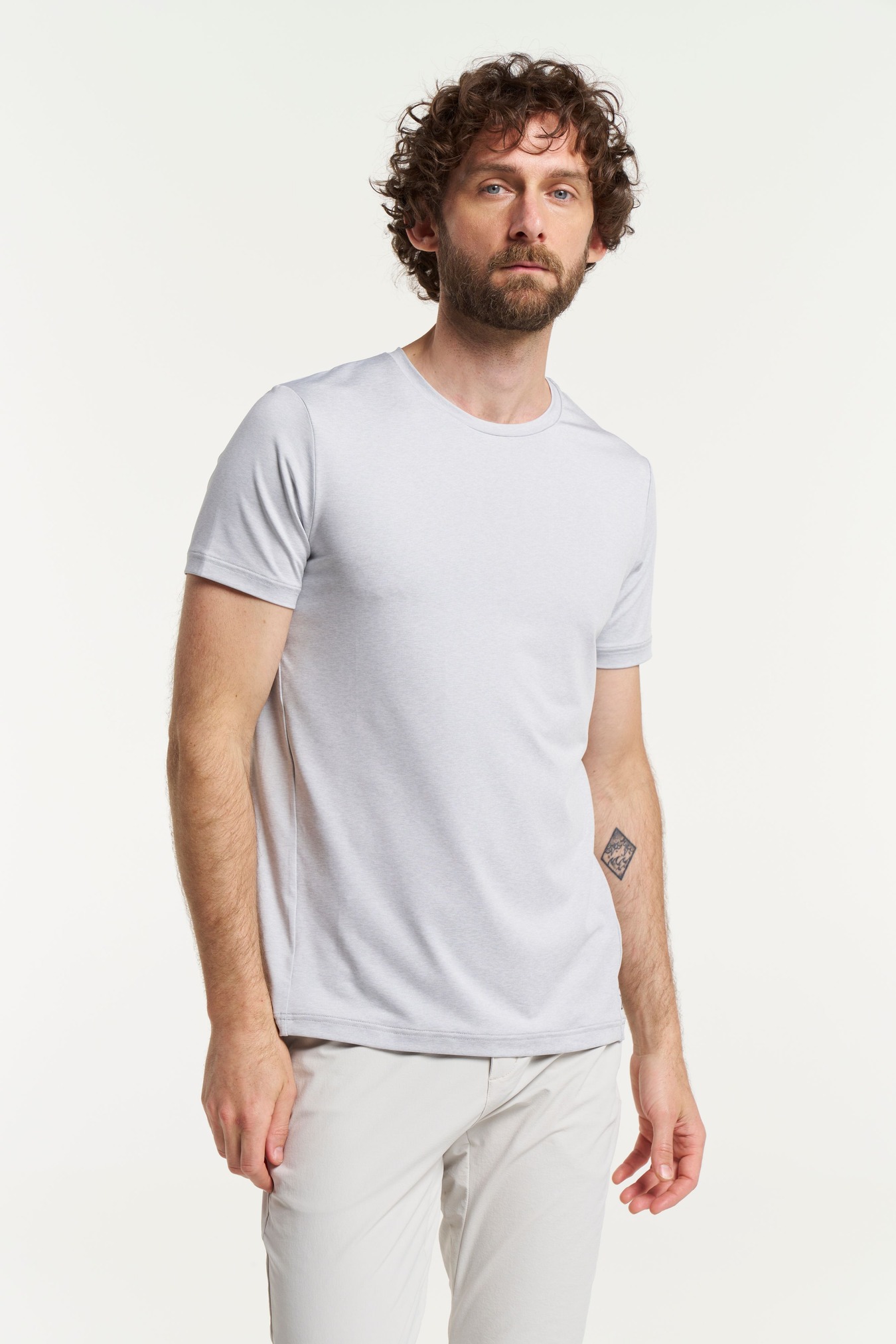 Een heel mooi, sneldrogend T-shirt voor training, reizen en buitenavonturen. Het materiaal is kreukvrij en dus perfect om in te pakken voor langere wandelingen, fietstochten of een weekendje weg. Het is gemaakt van 90% gerecycled polyester en 10% spandex, waardoor dit T-shirt zeer rekbaar en comfortabel aanvoelt. Heeft een normale pasvorm met afgeronde kraag.