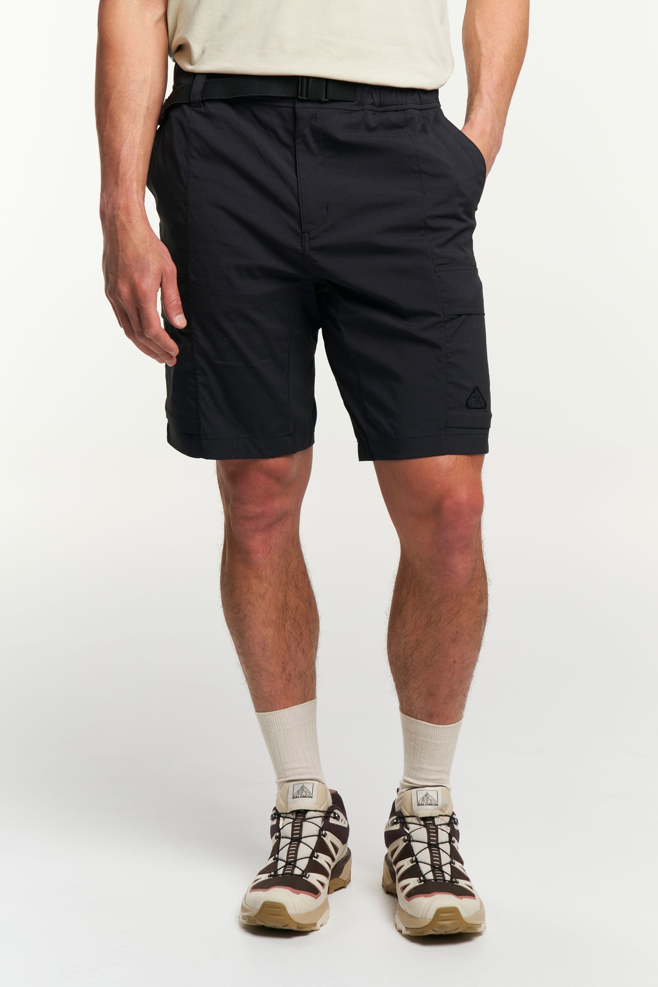 Made in quick drying, recycled stretch ripstop fabric - these travel-friendly Camper cargo shorts feature an adjustable elastic waistband with belt and handy pockets, perfect for everyday wear.